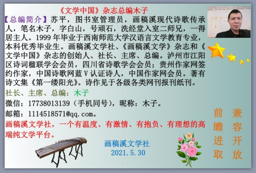 【作者简介】余家任,笔名老雨,中学语文教师。曾参与宜昌市《三峡教苑名星录》宜都卷编撰,国家级《中国百名校长箴言录》载有万字长篇,最高级别论文约稿至《全球中文核心期刊》。现有诗歌在《中国爱情诗刊》、《画稿溪文学》等刊物发表。系《中国爱情诗刊》.[中国爱情诗社]在线诗人。