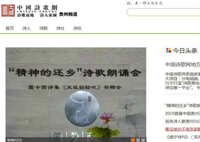 9月16日,中国诗歌网贵州频道(www.zgshige.com/dfpd/gzpd)正式开通,为贵州诗人、诗者营造了一个温馨家园,搭建了一个立足贵州、面向全国的诗歌高地。