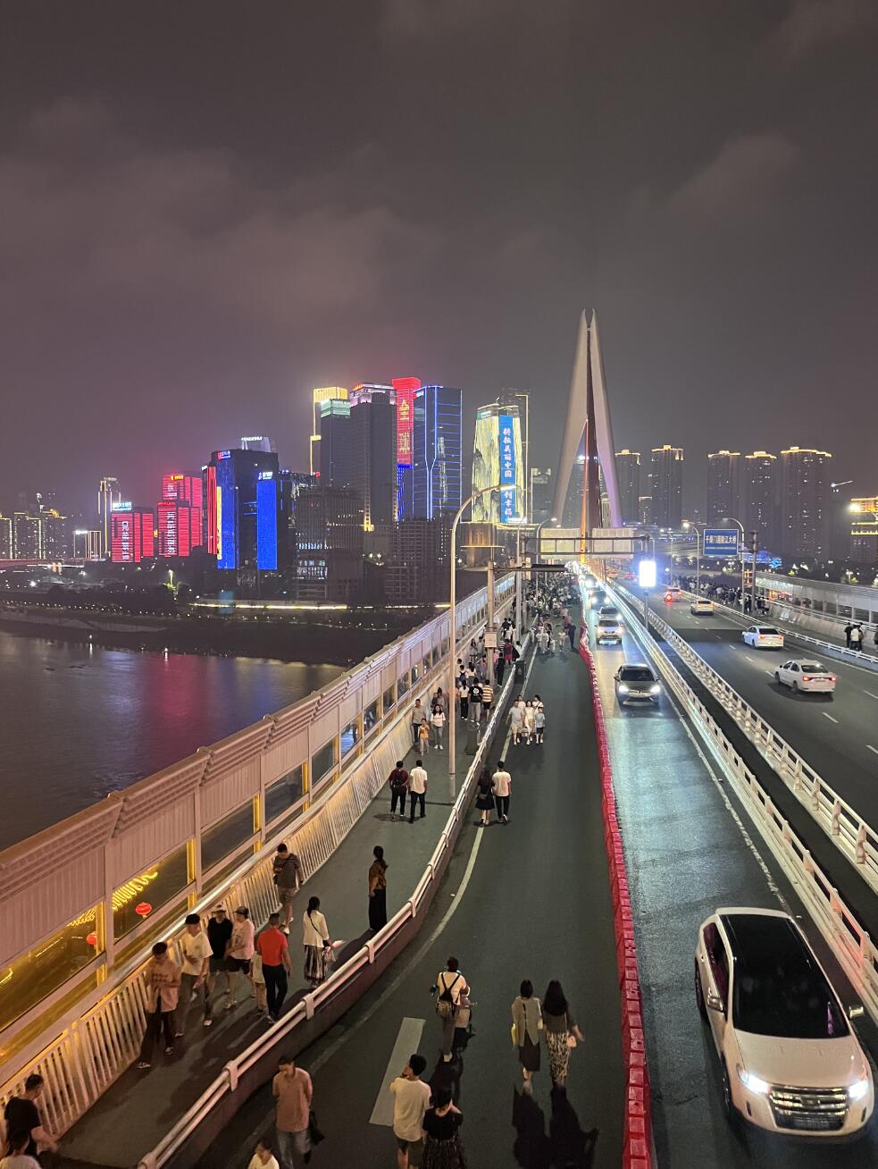 解放碑前看灯火,千厮桥上数归帆。