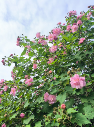 深红浅素云霞似,富丽堂皇锦缎如。